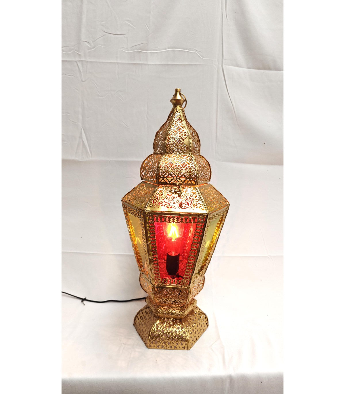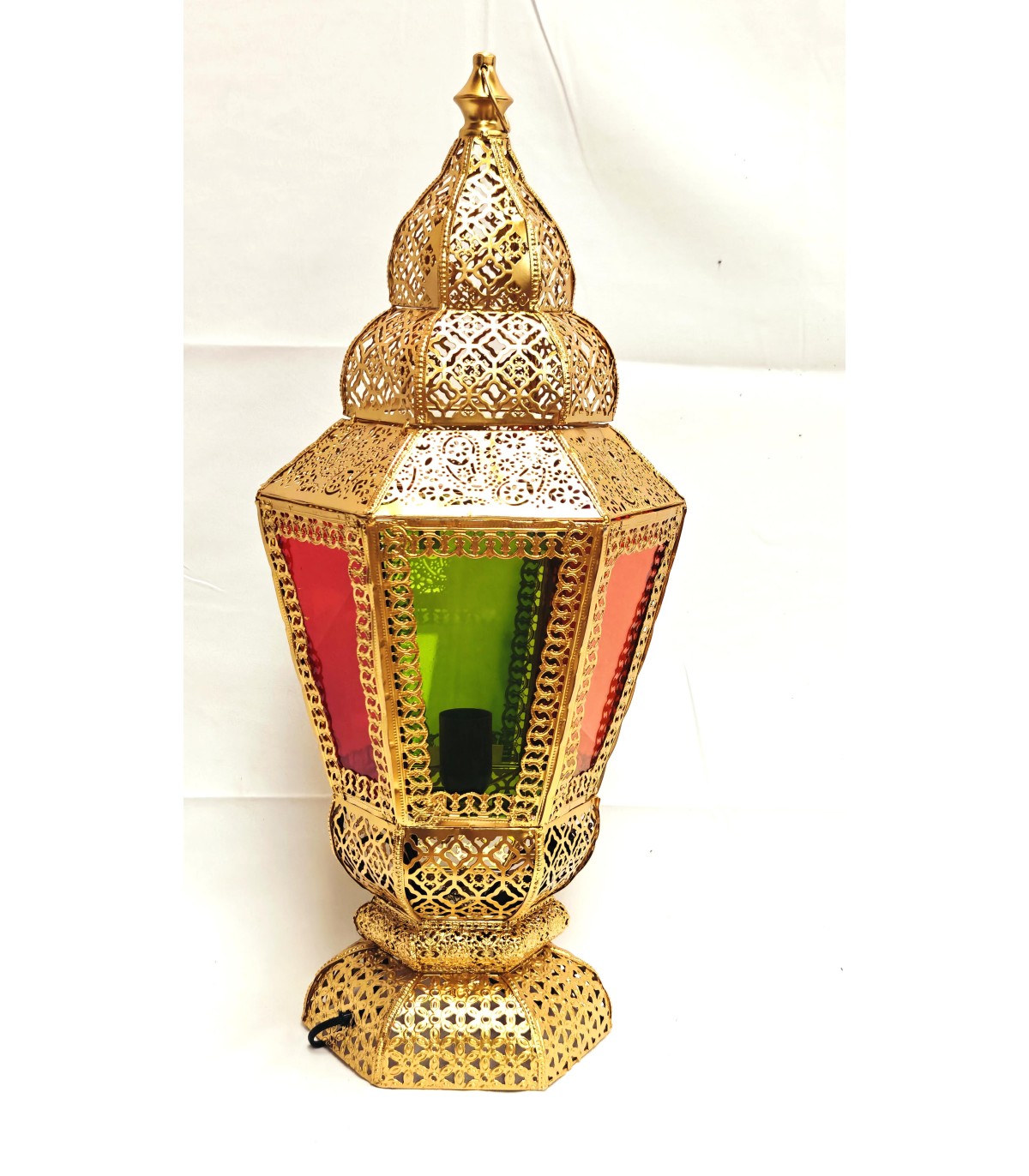Lámpara Farol de Pie Dorada - Pantalla de Cristal Multicolor - Modelo Fanusi